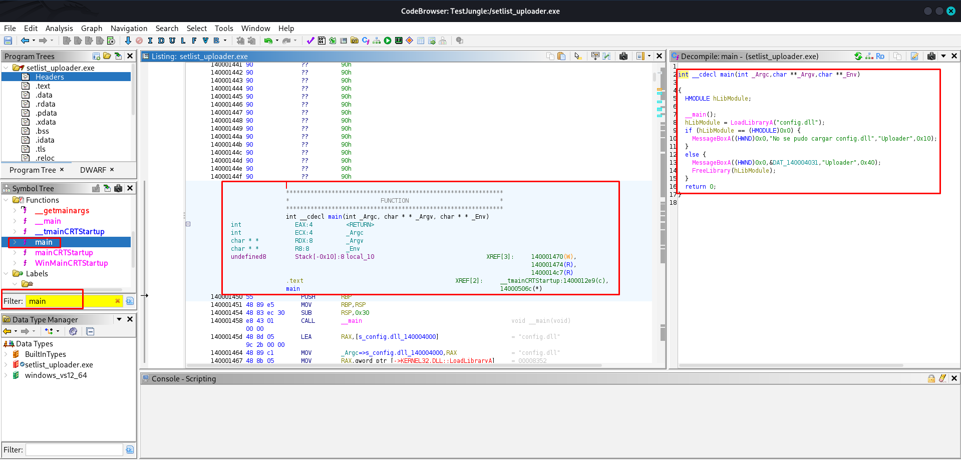 De igual forma, vemos cómo la función main y cómo se ejecuta este binario.