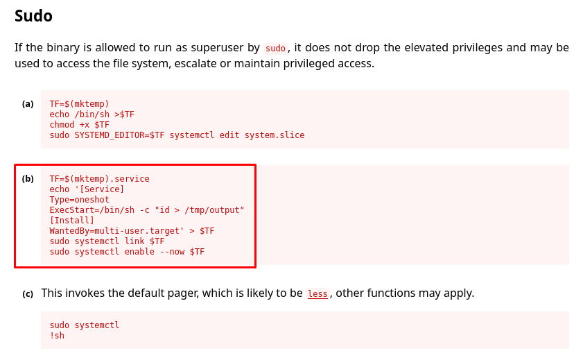 - https://gtfobins.github.io/gtfobins/systemctl/