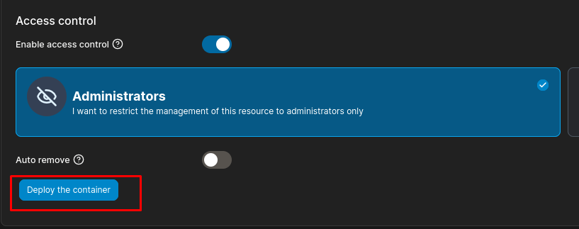 Ahí mismo podemos ver que se puede gestionar el contenedor actual.