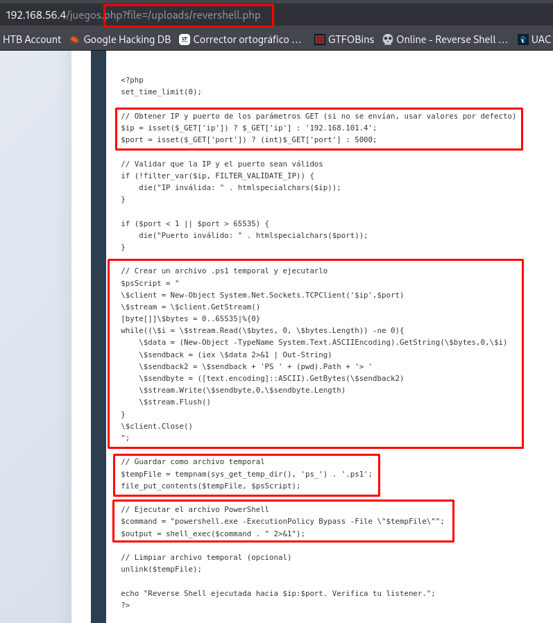 Esta fue una máquina un poco complicada. Después de analizar los escaneos, pasamos directamente a analizar la página web activa en el puerto 80. Ahí podemos identificar una página que es vulnerable a Local File Inclusion (LFI). Además, después de aplicar Fuzzing, identificamos una página que permite subir archivos, siendo que tiene un archivo precargado que resulta ser una Reverse Shell. Utilizamos esa Reverse Shell para ganar acceso principal a la máquina víctima. Revisando los privilegios, vemos que tenemos el SeImpersonatePrivilege, lo que nos permite escalar privilegios de dos formas, siendo la primera usando el comando getsystem de Meterpreter y la segunda usando la herramienta God Potato, siendo así que completamos la máquina.