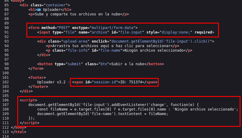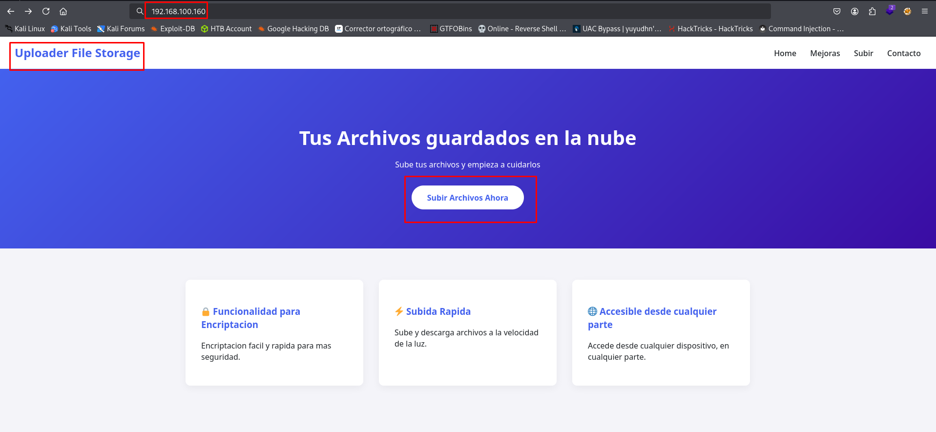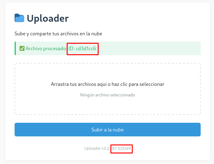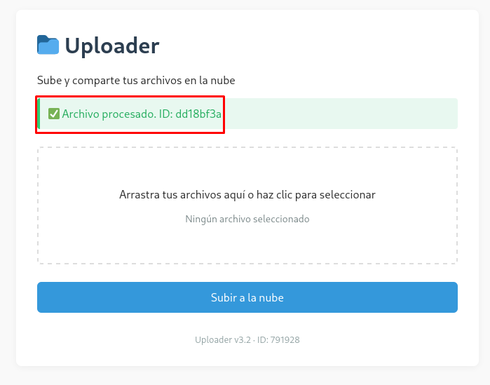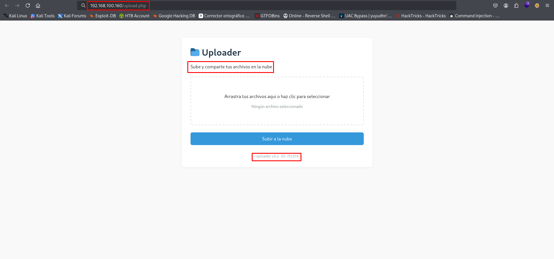 Dándole clic al botón central para subir archivos, nos envía a una página de PHP que permite la subida de archivos: